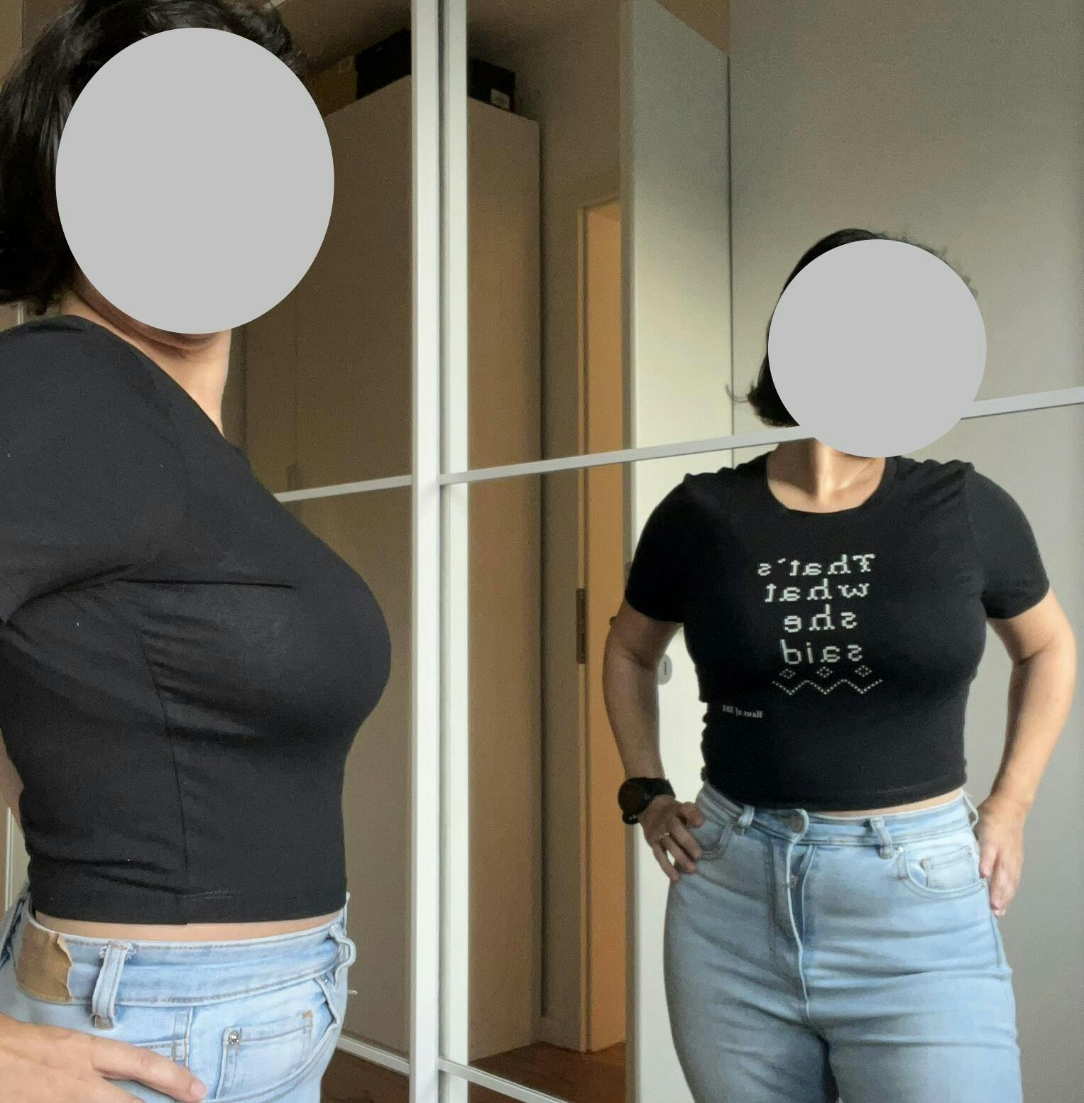 I love my new T-shirt! The quality is awesome: the clear print, the dense fabric. It’s really oversized, looks quite big on me even though it’s a size S. I usually wear between S and M, so next time I’ll order an XS. I can’t wait to wear it to KiTa and then meet my friends for a spritz right after!