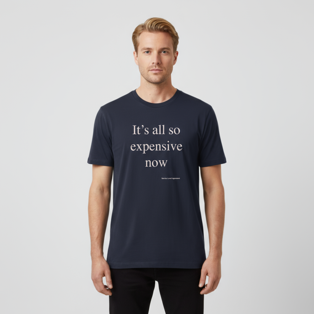 It's all so expensive. Men's Regular Fit Premium T-Shirt. - Not rich. Just emotionally taxed.