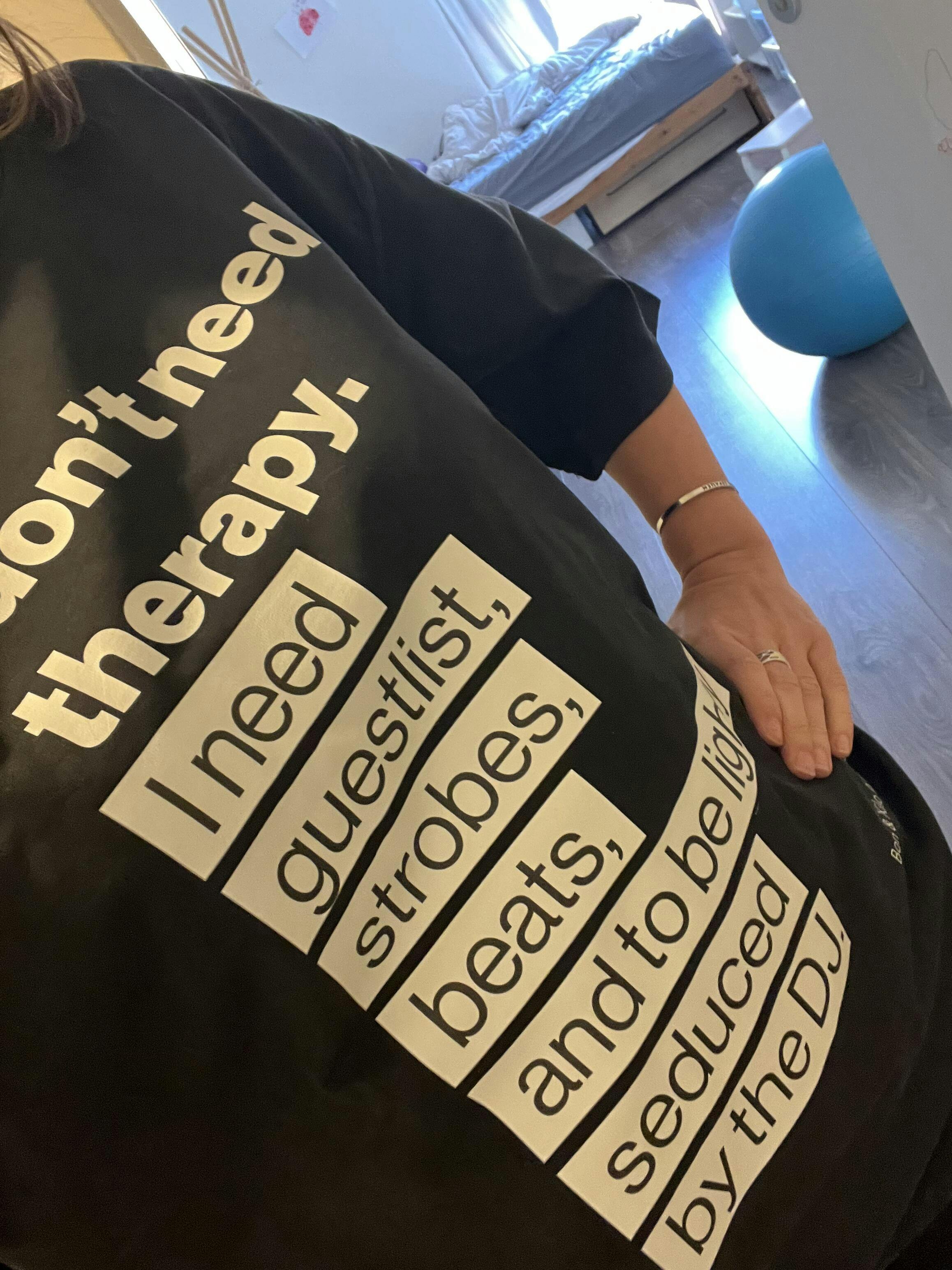 - Front: "I don’t need therapy..." – highlighted like a cry for help
