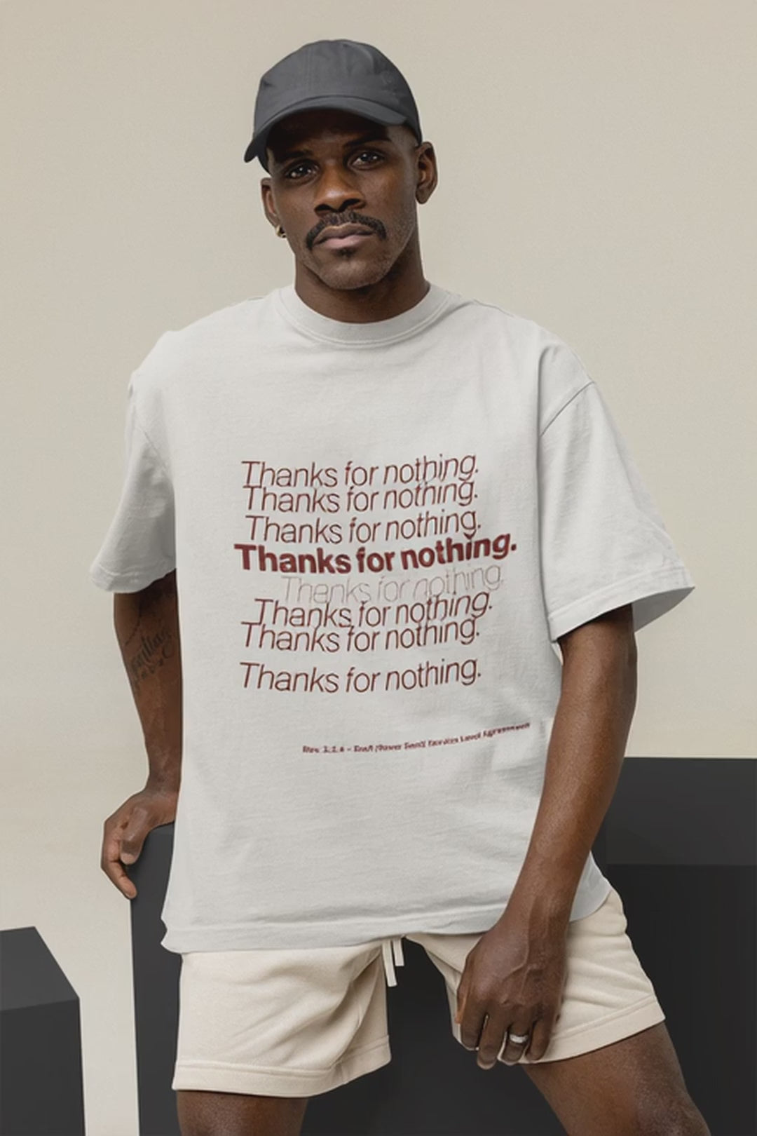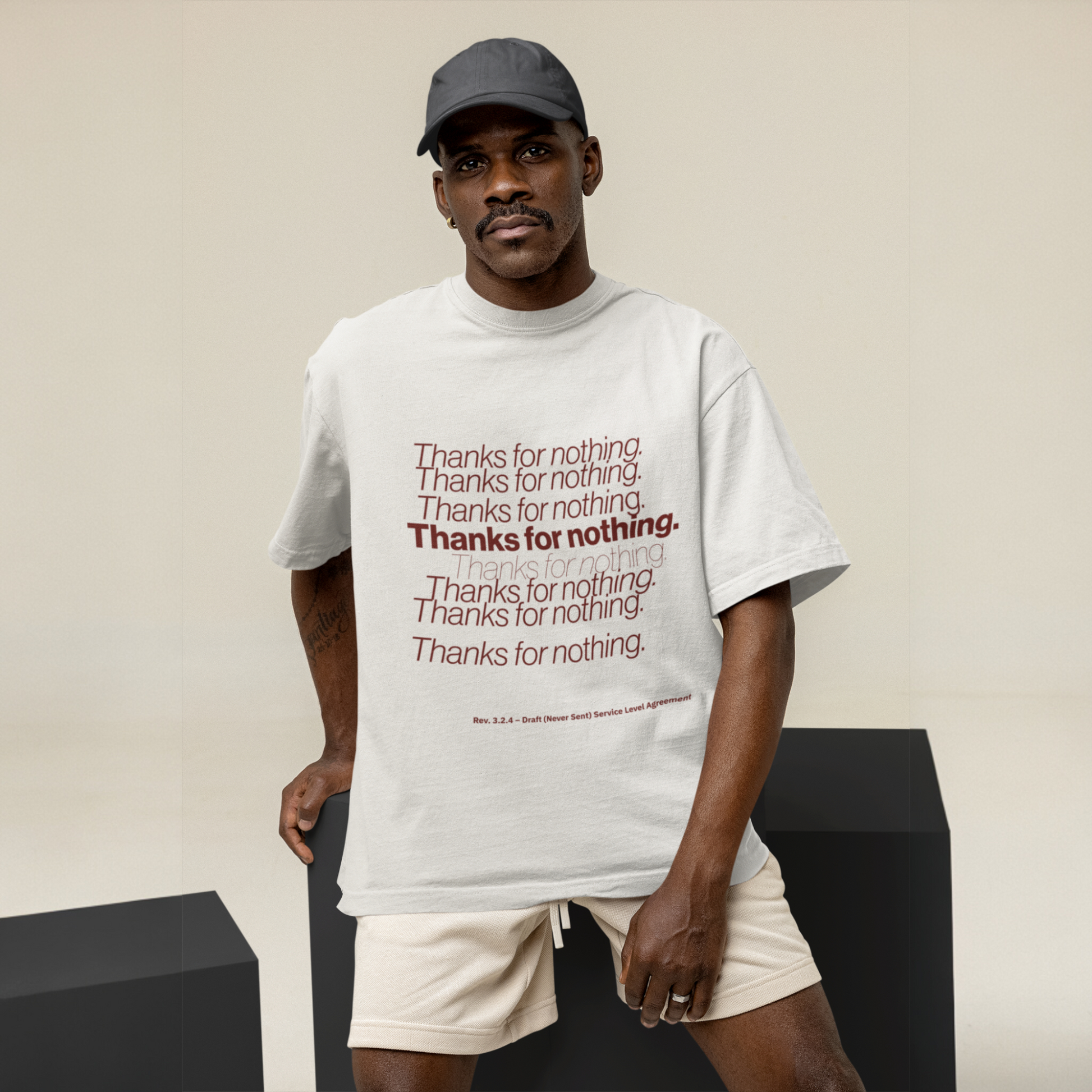This oversized premium tee captures that special flavor of disillusionment. A corporate thank-you loop gone wrong, fading like promises in your inbox. Soft cotton. Sharp sarcasm.